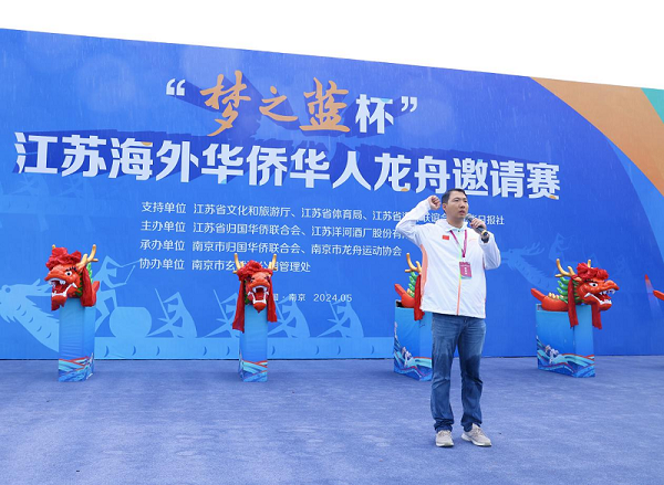 省侨联副主席艾卉在开幕式致辞中表示,绵延数千年的端午龙舟文化,已随着海外华侨华人的脚步传播到世界各地,受到越来越多的外国民众喜爱。此次龙舟赛首次邀请海外华侨华人代表回来同舟竞渡,既是传承中华龙舟文化、弘扬团结奋进精神的有益尝试,也是联络感情、增进友谊、凝聚侨心的创新实践。希望全体运动健儿大力弘扬体育运动精神,齐心协力、劈波斩浪,以奋进姿态赛出风格、赛出友谊、赛出佳绩。希望广大侨胞常怀“赤子之心”、长存“桑梓之情”,进一步传承和发扬中华优秀传统文化,发挥优势、汇聚资源,促进更多中华优秀文化“走出去”,向世界讲好中国故事、江苏故事,推动中外文明交流互鉴,不断提升中华文明传播力影响力。