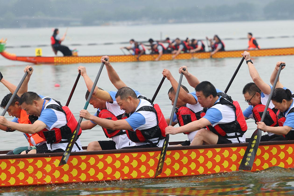 本次竞赛项目为公开组12人龙舟500米直道赛,共设4条赛道,采取两轮轮次赛制的方式进行。随着裁判员发令枪响,一连串急促的鼓点在玄武湖面响起,一条条龙舟如箭离弦、破水而出,在水面上留下一道道优美的水波。运动员们动作整齐、手起桨落,岸上观众摇旗欢呼、加油助威,一时间,鼓声、水声、呐喊声、欢呼声此起彼伏,连成一曲激昂的交响乐章,为现场观众带来一场酣畅淋漓的视觉盛宴。